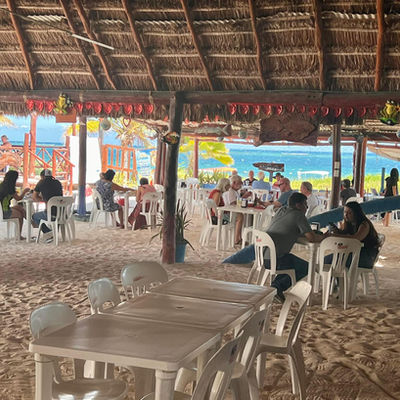 La Petita En La Playita, located on the Puerto side of Puerto Morelos, has been a popular spot since 1992. This casual beachfront seafood restaurant offers a choice between dining right on the sand or on the deck, both options fitting its laid-back atmosphere. It's known for its calm and relaxed vibe, making it an ideal place to enjoy local seafood favorites like ceviche, seafood cocktails, shrimp prepared in various styles, fish filets, lobster, and tacos. On weekends, live music livens up the scene, and the affordable prices attract both locals and tourists.